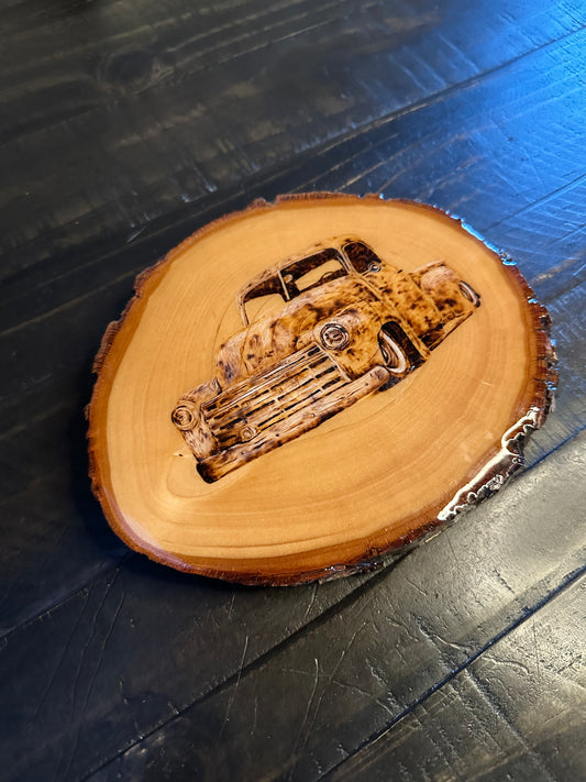 1950s Chevy Hot Rod Original Wood Burning | Handmade Classic Car Pyrography Rustic Wall Art