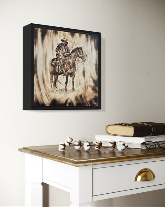 Cowboy on Horse Original Wood Burning | Handmade Western Pyrography Rustic Framed Wall Art