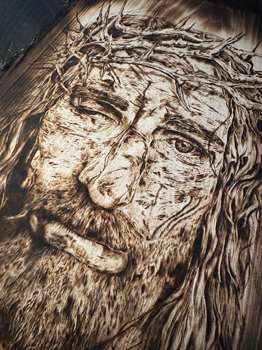 Jesus Crown of Thorns Original Wood Burning | Handmade Christian Wall Art Pyrography